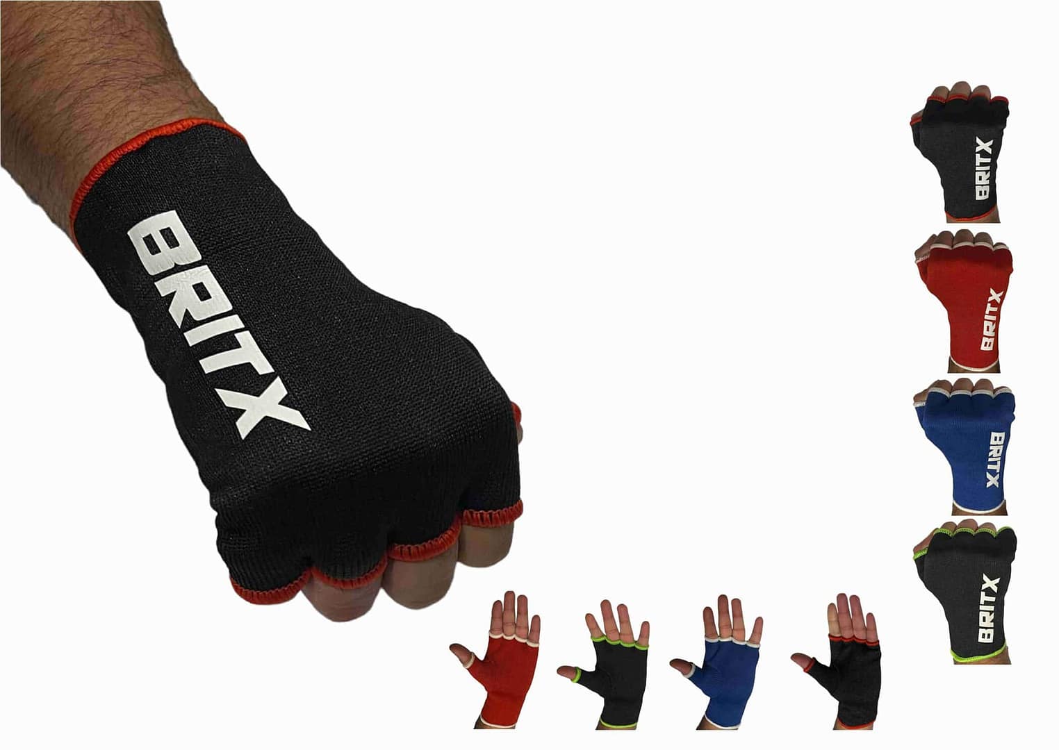BRITX Hand Wrap Inner Elasticated Gloves For Punching and Boxing, Half Finger Kickboxing Under Mitts Fits For Protection, Fantastic For MMA, Muay, Thai, Martial Arts Training